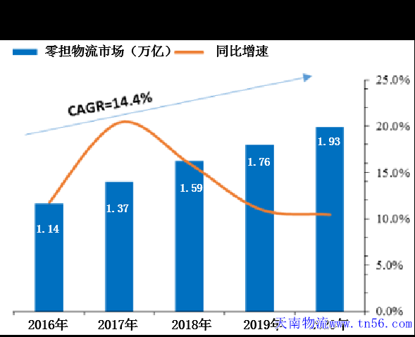 專家預(yù)測(cè),到2020年,零擔(dān)物流(即專線物流)行業(yè)市場(chǎng)體量將達(dá)到近2萬億元。從2016年開始,整個(gè)市場(chǎng)都在以10%以上的速度在增長(zhǎng),發(fā)展前景十分廣闊。
